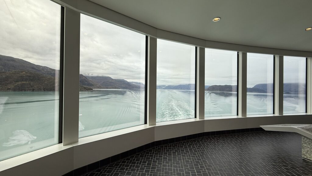 The Encore is a big ship – nearly 5,000! passengers at full capacity — and you feel it. The Observation Lounge, for example, was glorious when it was empty (wall-to-wall windows, sweeping views, all the cozy Scandinavian vibes), but once the crowds rolled in, finding a prime lounger felt like a competitive sport. Getting on and off the ship at ports also came with a healthy dose of patience and queuing — let’s just say I found myself reminiscing about the breezy “RockStar” priority perks on Virgin Voyages.