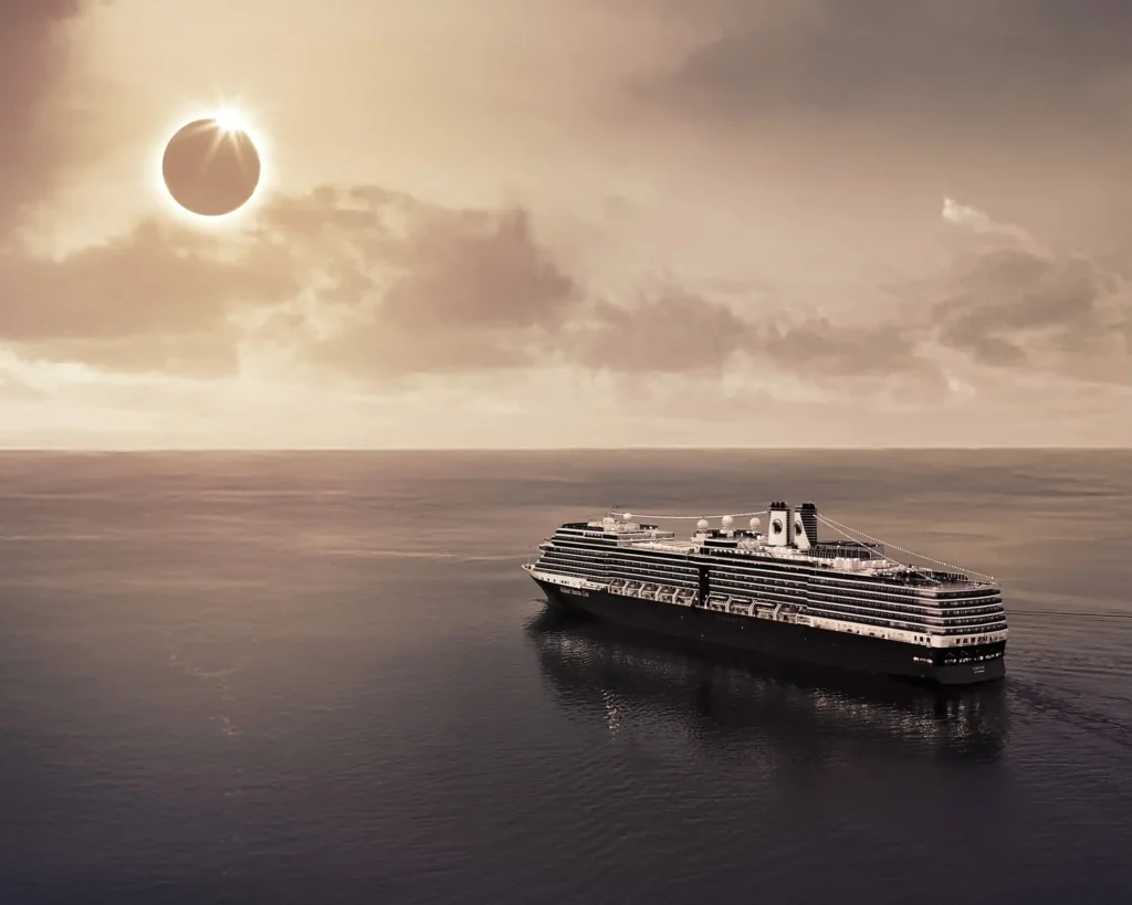 Holland America Line (Nieuw Statendam, July 10–August 7): Roundtrip from Rotterdam, explore Denmark, the UK, Spain, and Portugal, with eclipse viewing off the coast of Gibraltar.